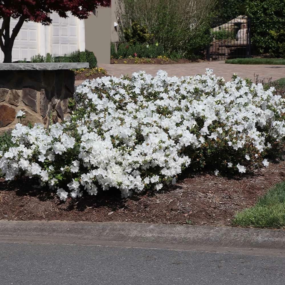 Triple Season Blooming: For borders or low hedges, plant about 2 feet apart on center and they quickly establish to provide beautiful white flowers in spring, summer, and fall. These repeat blooming azaleas have guaranteed white flower production throughout the growing season.